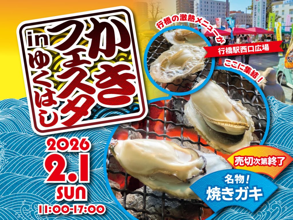 行橋の冬の恒例イベント「かきフェスタinゆくはし」を、下記のとおり開催いたします。