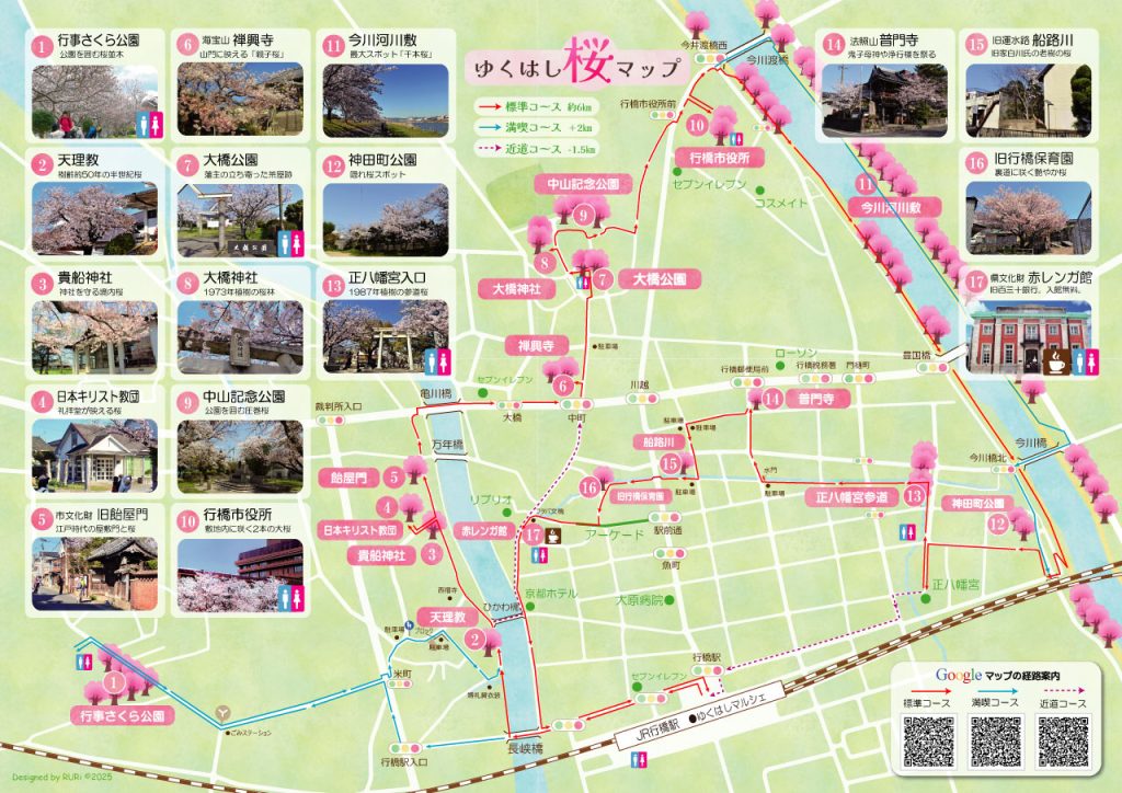 行橋駅を出発し、市内の桜の名所を散策して駅に戻って来るコースです。