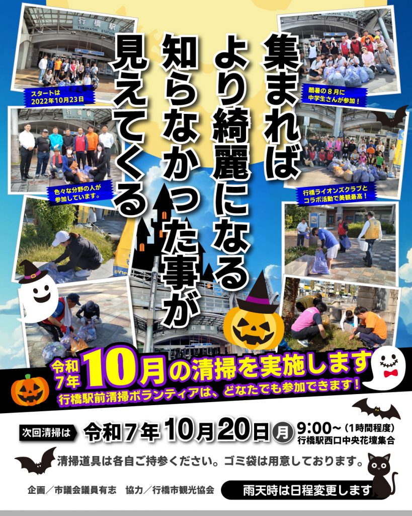 毎月、市議有志主催の行橋駅周辺のボランティア清掃活動が実施されています。9月は13日(土)に実施され、平日に参加できなかった方々のご協力がありました。
