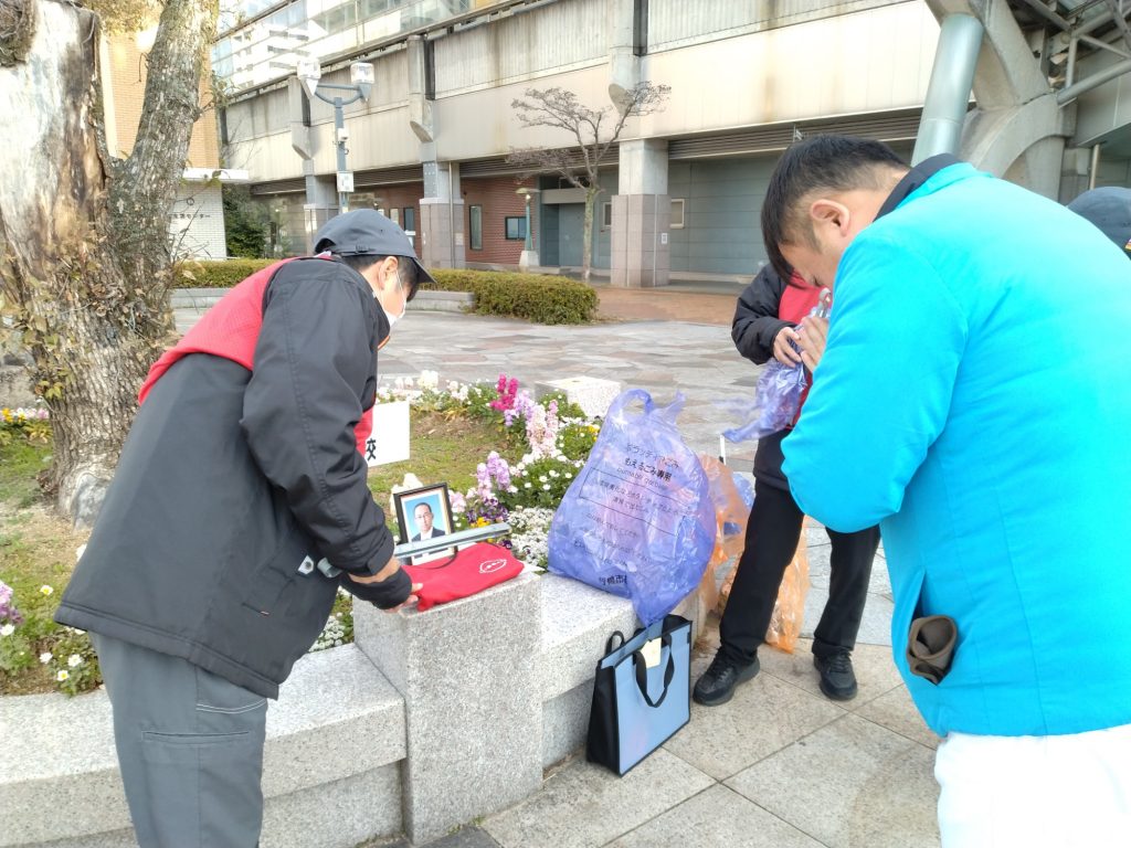 第1回目から清掃会に携わり、長年にわたり活動を支えてくださっていた市議会議員・矢野潤氏が、前の週に急逝され、突然の訃報に、関係者は悲しみの言葉を交わしながら活動しました。