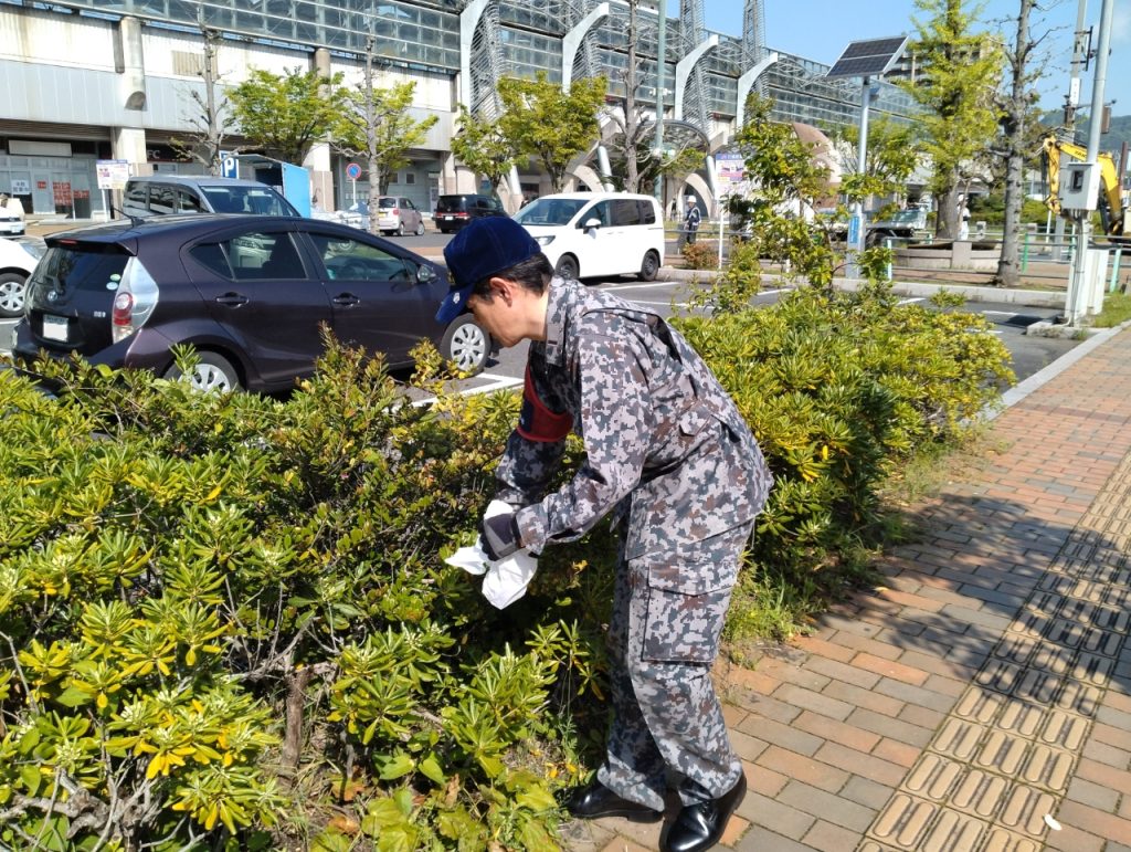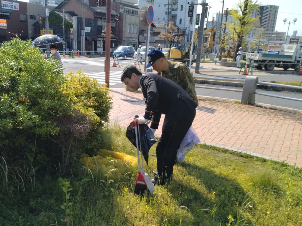 4月27日に第41回目の清掃を実施しました。前日は激しい雨で開催が心配されていましたが、当日は晴れ渡り、少し汗ばむほどの陽気の中で活動を実施いたしました。今月は着任したばかりの駅長に加え、自衛隊からもご参加いただくなど、益々多彩な人員の集まりになっています。清掃の後は、地域の垣根を越えた有意義な情報交換の場としても活気に満ちていました。